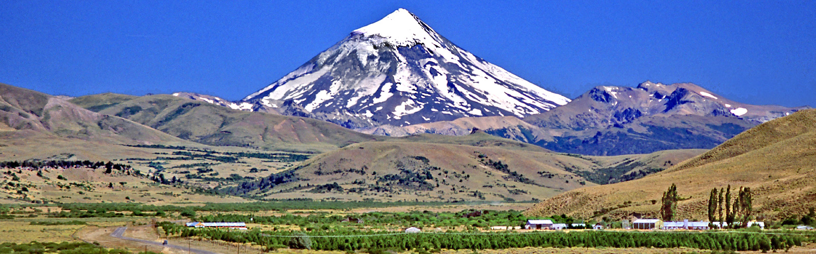 Südlich der Route erhebt sich der wunderbar geformte Vulkan LANIN, 3.747 m) Sein Gipfel ist fast immer von Schnee und Gletschereis bedeckt.