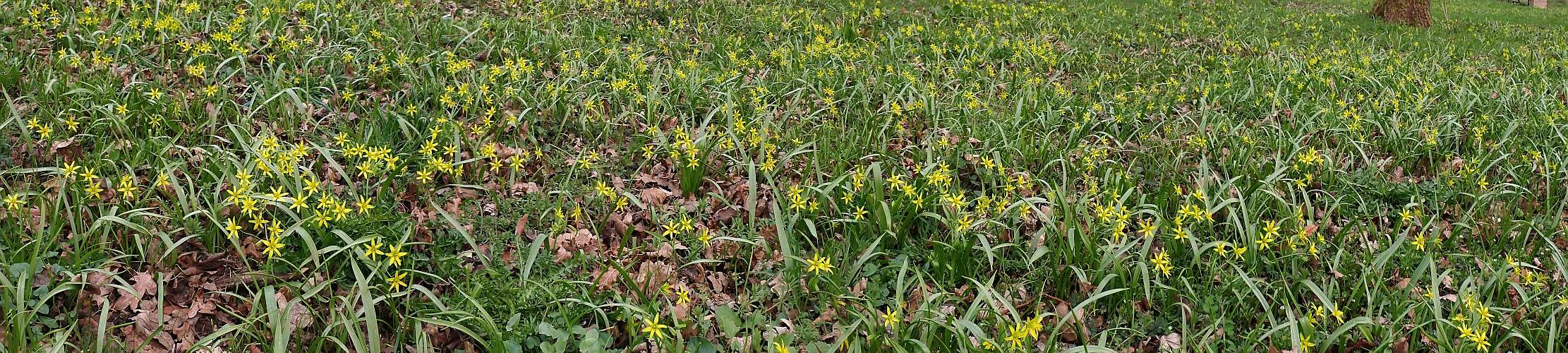 In Parks und Auenwäldern oder wie hier auf einem ehemaligen Hutanger kann im Vorfrühling der Wald-Gelbstern (Gagea lutea) einen hübschen Blütenteppich bilden. Ansonsten trifft man die Pflanze eher nur vereinzelt an.