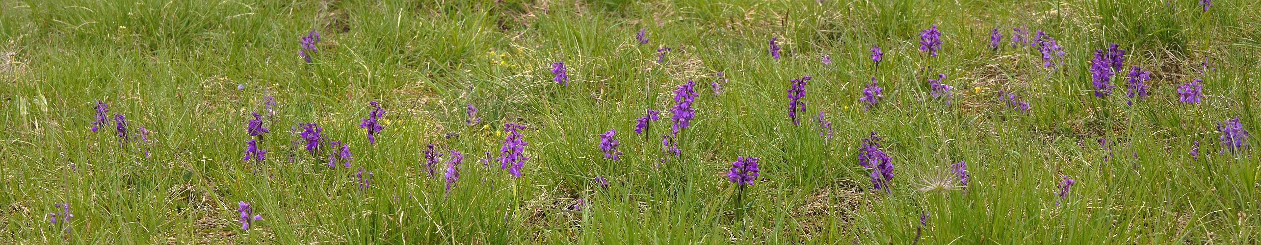 Kleines Knabenkraut (Orchis morio) in 5 Freihand-QF-Aufnahmen, Brennweite ca 70mm KB, 1/125 sec, f 7,1.