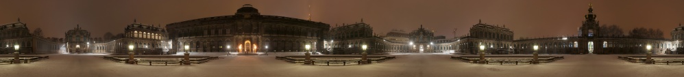 Zum anderen, dass Fotografieren (zumindest bei mir) eben auch Glückssache ist. Eigentlich wollte ich an diesem bitterkalten Abend nämlich ein 360er vom benachbarten Theaterplatz produzieren. Daran bin ich (wie schon mehrmals) gescheitert. Als sich Frost und Frust dann die Hand gaben, sagte ich mir: "Jetzt versuchst du noch mal schnell den Zwinger - und dann nichts wie nach Hause"...