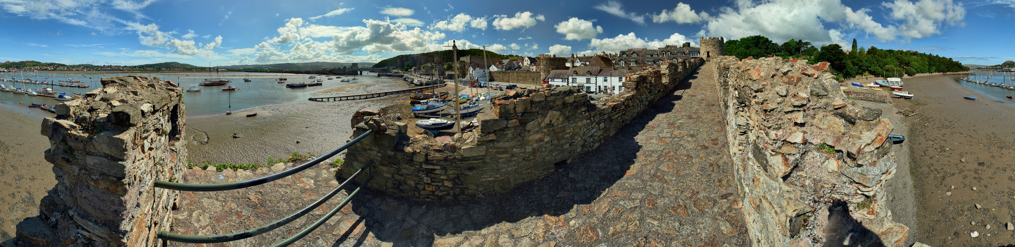 Conwy ist eine der wenigen Staedte die noch eine fast komplette Stadtmauer haben. Sie wurde nicht vone den Walisern errichtet um etwa die Englaender oder sonst jemanden draussen zu halten. In Conwy wurden englische Siedler abgesetzt und dann spaeter wurde die Burg und die Stadtmauer gebaut um die Angriffe der einheimischen Waliser abzuwehren und die Englaender in Wales zu schuetzen.