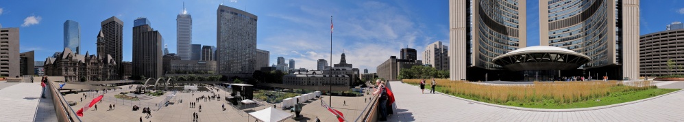 The City Hall of Toronto, Ontario, Canada is one of the most distinctive landmarks of the city. Designed by Finnish architect Viljo Revell (with Heikki Castrén, Bengt Lundsten, Seppo Valjus), landscape architect Richard Strong, and engineered by Hannskarl Bandel, the building opened in 1965; its modernist architecture still impresses today. It was built to replace Old City Hall, which was built in 1899.