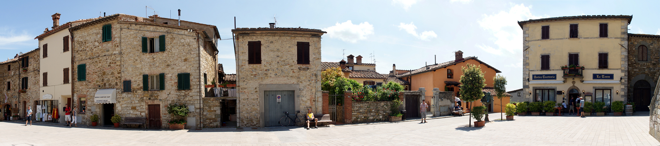Das Panorama zeigt die Piazza del Comune vor dem Archäologischen Museum des Chianti Senesi.