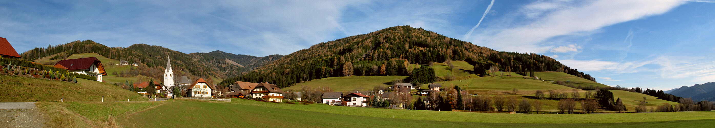 Blick auf das kleine Dörfchen St.Oswald, gehörend zur Gemeinde Möderbrugg im Pölstal.