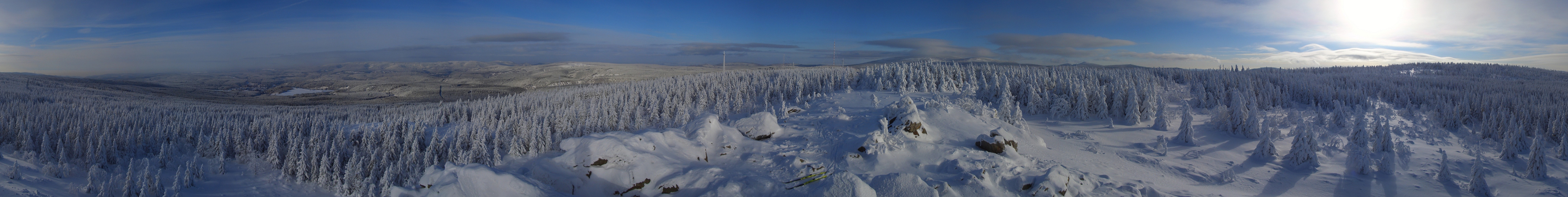 hat man an der Wolfswarte, einer Felsklippe am Bruchberg, den man auf wunderschönen Loipen umrunden kann. An sonnigen Winterwochenenden kann es im Harz zwar ganz schön voll werden, doch an diesem Freitag ist mir erst nach drei Stunden ein anderer Langläufer begegnet und zur Wolfswarte, die ein Stück oberhalb der Loipe liegt, konnte ich als Erster eine Spur in den frischen Schnee ziehen.