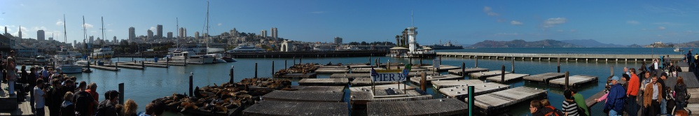 Der Pier 39 ist ein Teil von Fisherman’s Wharf in San Francisco. Es ist eine ehemalige Bootsanlegestelle, die heute einen ganzjährigen Rummel mit Souvenir-Läden, Fahrgeschäften, Restaurants und einem Aquarium beherbergt. Die Pier befindet sich im Norden von San Francisco und ist eine bekannte und sehr beliebte Touristenattraktion. Neben den kommerziellen Einrichtungen gibt es auch eine „kostenlose“ Attraktion: Es haben sich kalifornische Seelöwen auf Anlegestellen an der Pier angesiedelt und nutzen diese als Ruheplätze. (Wikipedia)