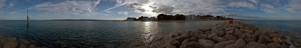 Ich befinde mich hier am Eingang zum Poole Harbour einem großen Naturhafen. Die Sandbanks sind eine Nehrung an der Hafeneinfahrt. 360° |