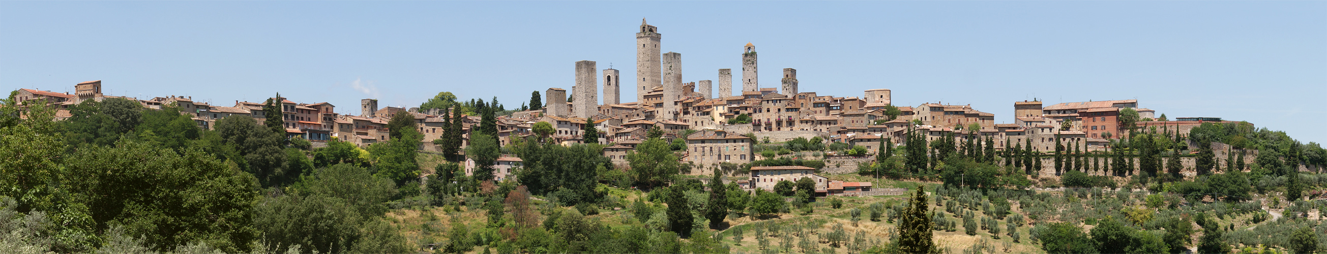 San Gimignano wird auch Mittelalterliches Manhattan oder die Stadt der Türme genannt. Der historische Stadtkern ist seit dem Jahr 1990 Weltkulturerbe der UNESCO. San Gimignano besitzt noch heute einige der mittelalterlichen Geschlechtertürme, die in anderen Städten nur als Stümpfe erhalten blieben. Die reichen Familien im Mittelalter versuchten, sich in der Höhe ihrer Türme gegenseitig zu übertrumpfen und damit ihre Macht zu demonstrieren. Das schien ihnen wichtiger zu sein als ein luxuriöses Leben, das in solchen Türmen natürlich nicht möglich war. Von den einst 72 Geschlechtertürmen existieren in San Gimignano heute noch 14.