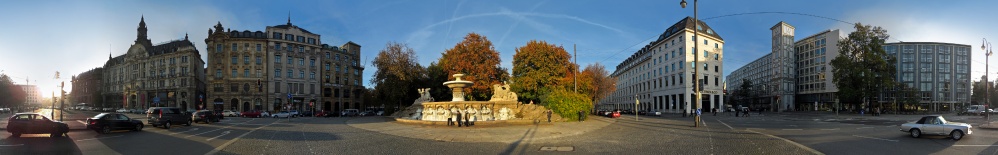 Die täglich im Stau stehenden Autofahrer dürfen diesen Blick zwar kennen, wohl aber nicht so genießen wie ich es auf meinem Bike tat. Mit meiner neuen Taschenknippse (Canon Ixsus 200) in der Hosentasche wagte ich mich an dieses schwierige Motiv. Die Sonne strahlte schön warmes Licht, an der Ampel standen Fahrzeuge brav für mein Pano an nur das gleisende Gegenlicht war auch mit Unterbelichten heftig (wahrscheinlich nur mit 6er-HDR beherrschbar, wo ist meine Sony ;-)