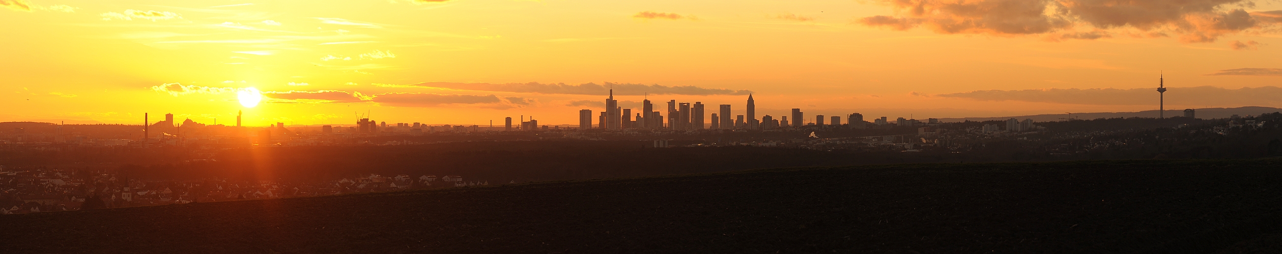 Die "Hohe Straße" führt über eine Länge von 20 km nördlich von Frankfurt entlang. Der wahrscheinlich schon aus vorrömischer Zeit stammende Weg ist heute eine beliebte Fahrradstrecke. Immer wieder kann man herrliche Ausblicke in alle Richtungen genießen; auf Vogelsberg, Taunus, Odenwald und wie hier auch bis zum Donnersberg. Jedoch gibt es keine Stelle für einen 360-Grad-Rundblick; zumindest auf dem Streckenabschnitt, den ich kenne. Als der schönste Abschnitt gilt die Strecke zwischen Bergen-Enkheim und dem Hühnerberg. Dem Fotografen stellen sich allerdings oft mächtige Hochspannungsmasten bzw. -leitungen in den Weg. So musste ich ein ganzes Wegstück hinab gehen, um einigermaßen Leitungsfreiheit zu erlangen.