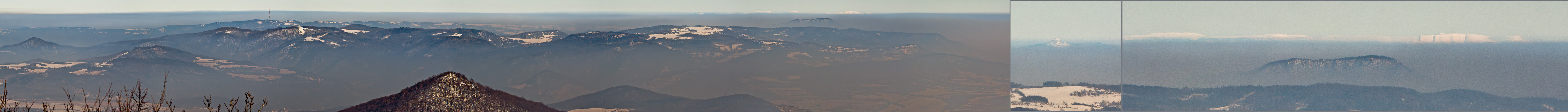 Den Doppelberg Lucni hora / Studnicni hora habe ich schon mal im Herbst vom Radobyl sehen können, dokumentiert in meinem Panorama Nr. 9007. Zwischen diesen beiden ist ja nur nur ein flacher Sattel, 1498m hoch. Durch diesen sind wir vor Jahren öfter mit Langläufern zur Wiesenbaude.