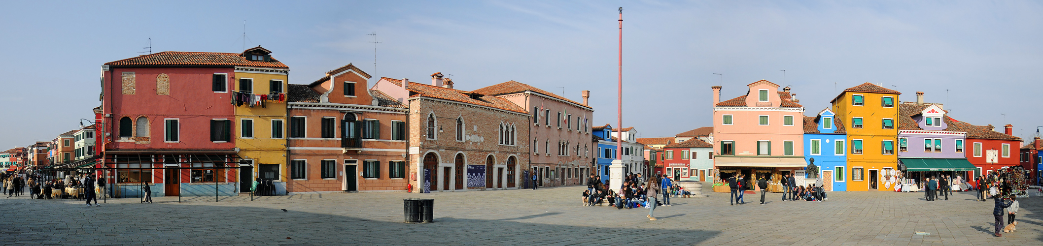 Burano is an island in the lagoon of Venice. It 's known for its brightly colored houses, for its laces and its leaning tower. Piazza Galuppi is its main square.